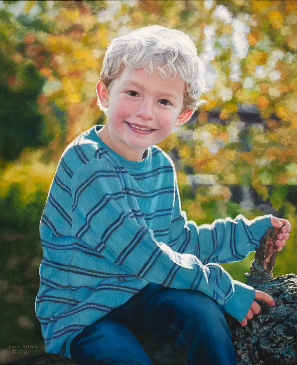 Outdoor lighting is best, but make sure there is no glare that would make the subject squint. Light from the side often makes a lovely portrait. I also need several frames of each pose, to allow for corrections and for getting the best expression. A variety of poses will give me more options for making a beautiful portrait. So do take many photos. Send me your best, and we will go from there.