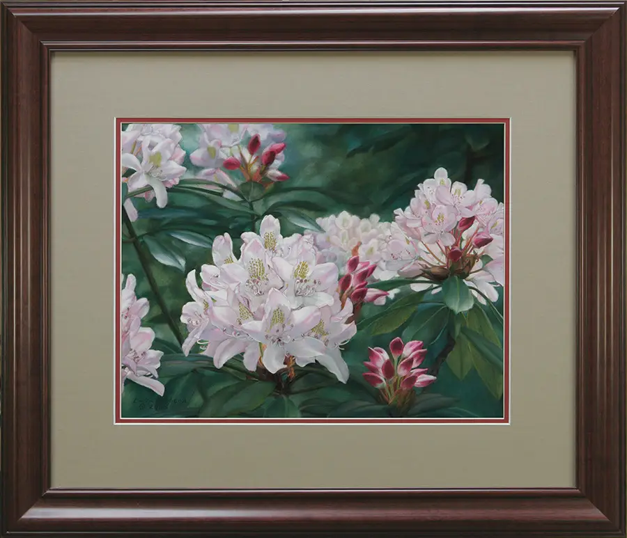 “Rhodies of West Virginia” – Framed Original Pastel Painting